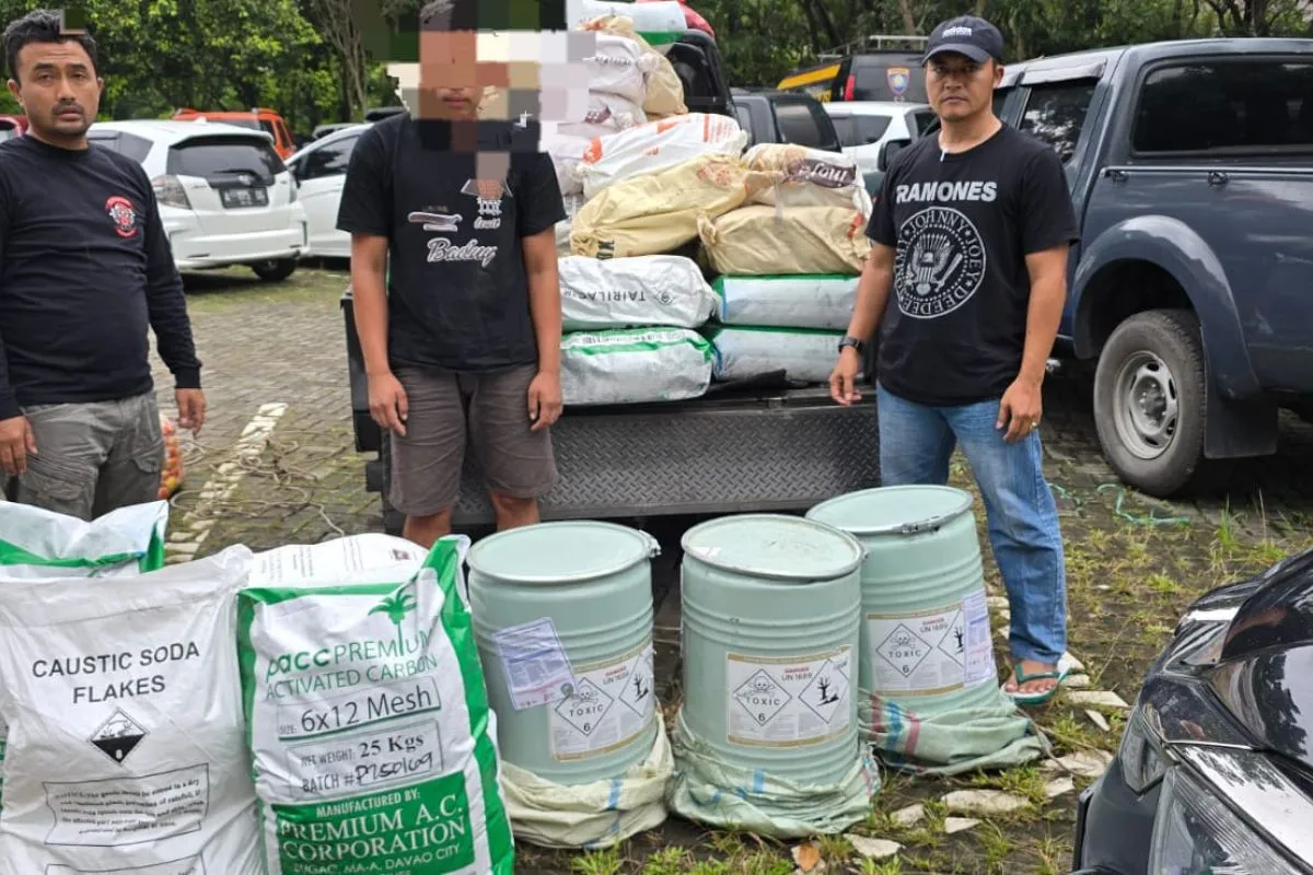 Reza menerangkan adapun barang bukti hasil pengungkapan kasus tersebut yakni tiga buah drum sianida padat berat 150 kg, 15 karung karbon, 25 karung apu serta surat jalan dan dari keterangan pelaku kegiatan tersebut sudah dilakukan sejak buln Januari 2025.