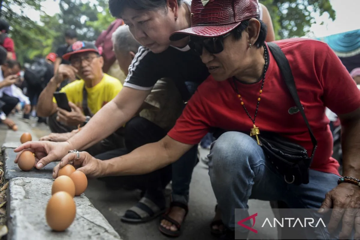 Tradisi mendirikan telur saat perayaan Peh Cun