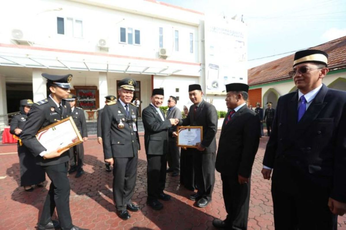 Sebagai bagian dari peringatan, Kanwil Kemenkumham Banten menyerahkan penghargaan kepada mitra kerja strategis yang berperan dalam penguatan layanan hukum kepada masyarakat.