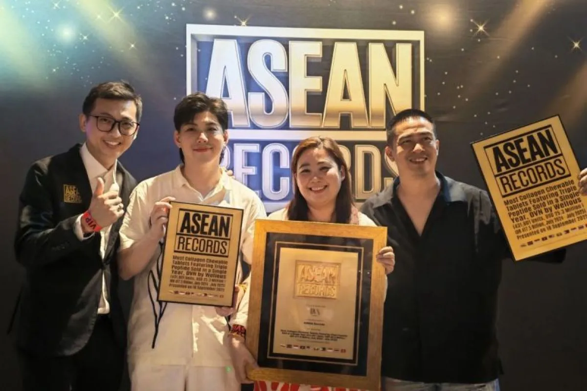 Pencapaian luar biasa ini telah diverifikasi dan secara resmi tercatat dalam ASEAN Records dengan judul: “Tablet Kolagen Kunyah Mengandung Triple Peptide dengan Penjualan Terbanyak dalam Satu Tahun” Sebuah Pencapaian Pemecahan Rekor dalam Dunia Kesehatan.