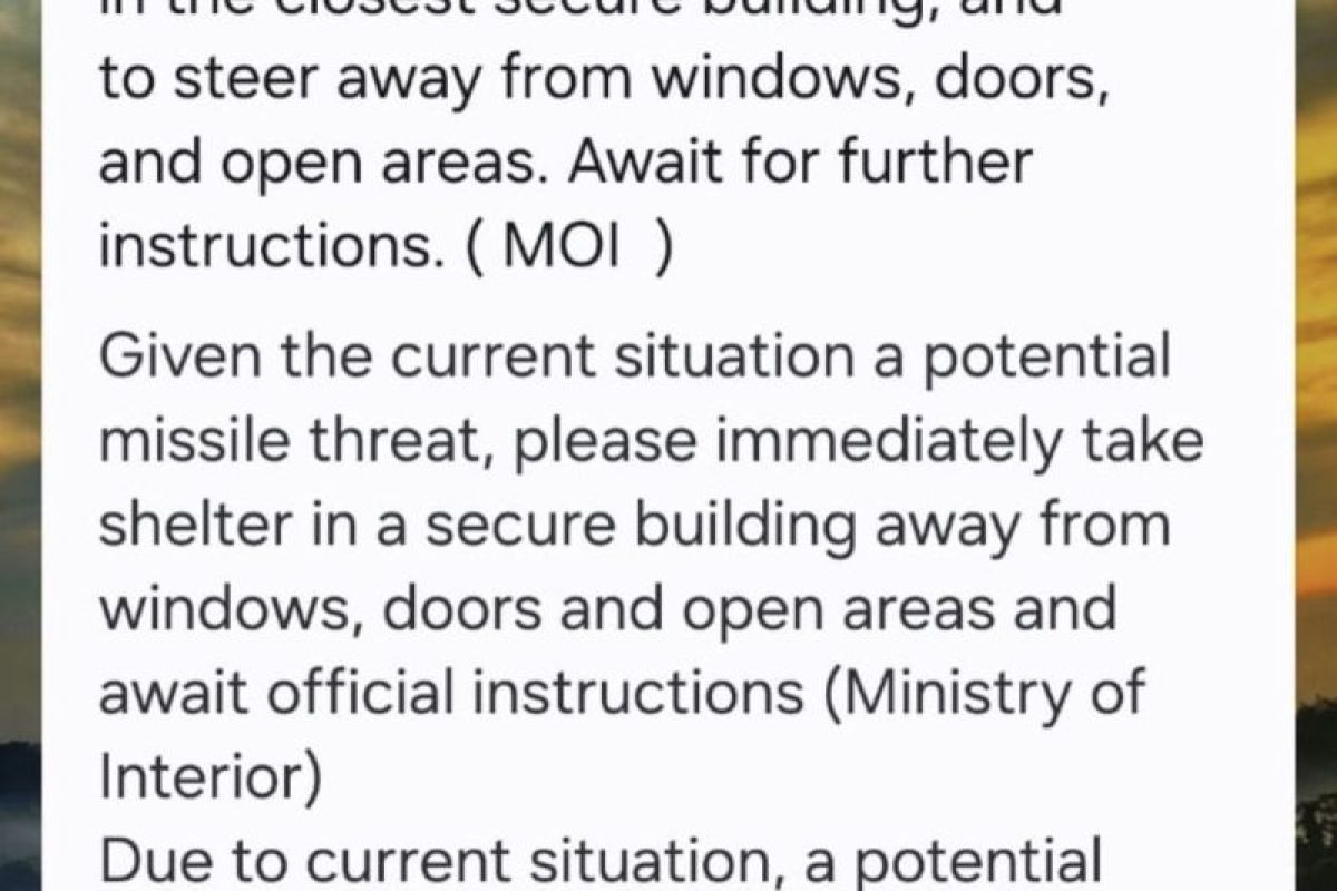 Otoritas UAE merilis imbauan melalui notifikasi bagi siapapun yang berada di wilayah terdampak yang diterima melalui ponsel dalam keadaan aktif. Notifikasi berisi imbauan agar mencari tempat yang aman, menjauhi pintu, jendela, dan area terbuka serta menunggu instruksi lanjutan.