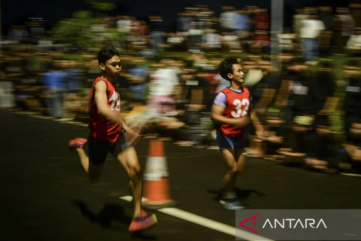Peserta memacu kecepatan saat lomba lari Fun Night Run di Serpong, Tangerang Selatan, Banten, Jumat (6/3/2026). Polres Tangerang Selatan menggelar lomba lari berjarak 100 meter yang diikuti 64 peserta sebagai upaya mengurangi maraknya tawuran antar remaja pada bulan Ramadhan sekaligus menyalurkan minat dan bakat untuk kegiatan positif.