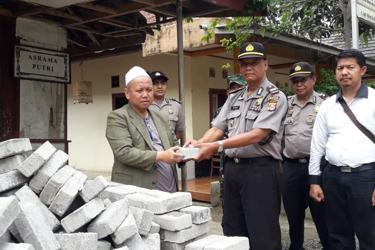 Tidak sekadar silaturahmi, Kapolsek didampingi Kanit Sabhara Iptu Rahya, Bhabinkamtibmas Aipda Karon, Brigadir Haris dan Sertu Asep perwakilan Danramil Jiput, juga menyalurkan bantuan paving blok sebanyak 150 meter persegi untuk penataan lingkungan Ponpes dan diterima langsung oleh pimpinan Ponpes Al Khoziny KH Khozinul Asror.