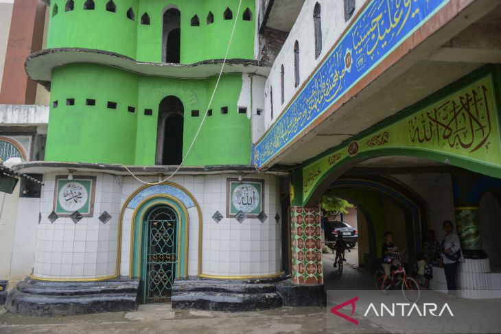 Seorang warga berjalan di area Masjid Pintu Seribu, Kota Tangerang, Banten, Senin (10/3/2025). Masjid yang berdiri pada tahun 1978 itu menjadi salah satu destinasi wisata religi karena keunikannya yang memiliki banyak pintu. ANTARA FOTO/Putra M. Akbar/gp
