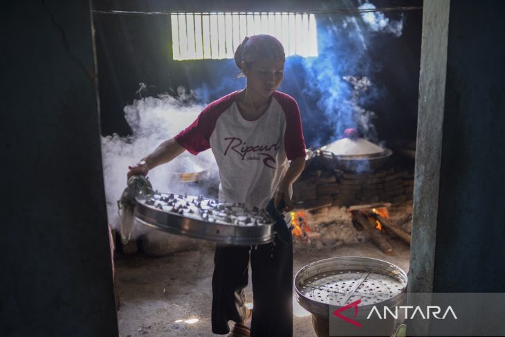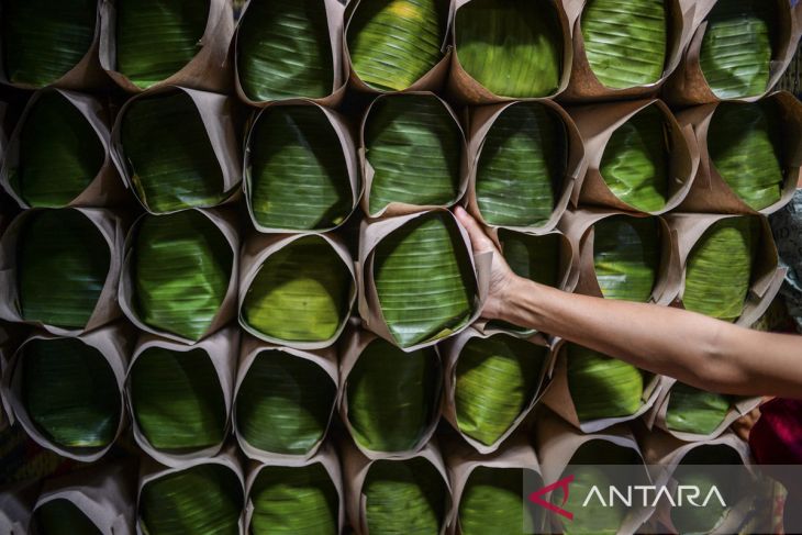 Pekerja mengemas apem yang siap dijual di Sentra Produksi Apem Barokah 1970, Desa Kadubungbang, Pandeglang, Banten, Jumat (14/3/2025). Pelaku usaha setempat mengaku permintaan apem khas Pandeglang yang biasa disajikan untuk menu berbuka puasa tersebut pada Ramadhan mengalami lonjakan permintaan dari rata-rata dapat memproduksi sebanyak 20 kilogram apem per hari menjadi 2 kwintal apem per hari dan dijualnya seharga Rp10.000 per bungkus. ANTARA FOTO/Muhammad Bagus Khoirunas/gp