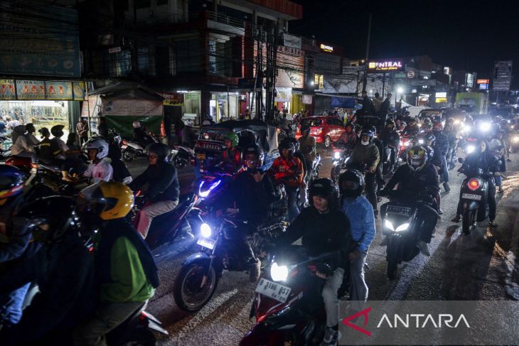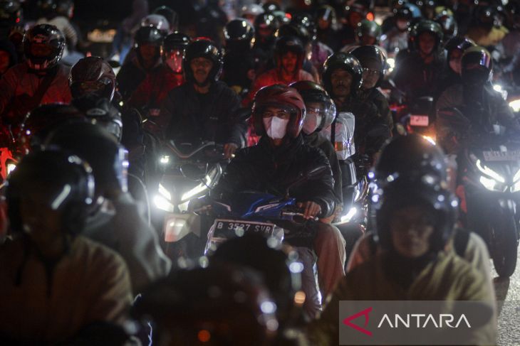 Pemudik sepeda motor melintas di Jalan Raya Serang, Cikupa, Kabupaten Tangerang, Banten, Sabtu (29/3/2025). Pada H-2 Idul Fitri 1446 Hijriah, volume kendaraan di jalur arteri Tangerang-Serang terpantau masih ramai oleh pemudik sepeda motor yang akan melintas menuju Pelabuhan Ciwandan. ANTARA FOTO/Putra M. Akbar/gp