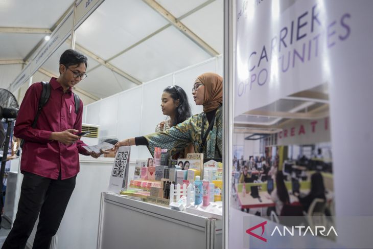 Pencari kerja mencari informasi lowongan pekerjaan saat bursa kerja Naker Fest 2025 di Kantor Dinas Tenaga Kerja Kabupaten Tangerang, Balaraja, Kabupaten Tangerang, Banten, Kamis (8/5/2025). Badan Pusat Statistik mencatat per Februari 2025 angka pengangguran di Provinsi Banten sebanyak 412.710 orang atau turun 11.980 orang dibanding periode yang sama pada tahun sebelumnya. ANTARA FOTO/Putra M. Akbar/gp