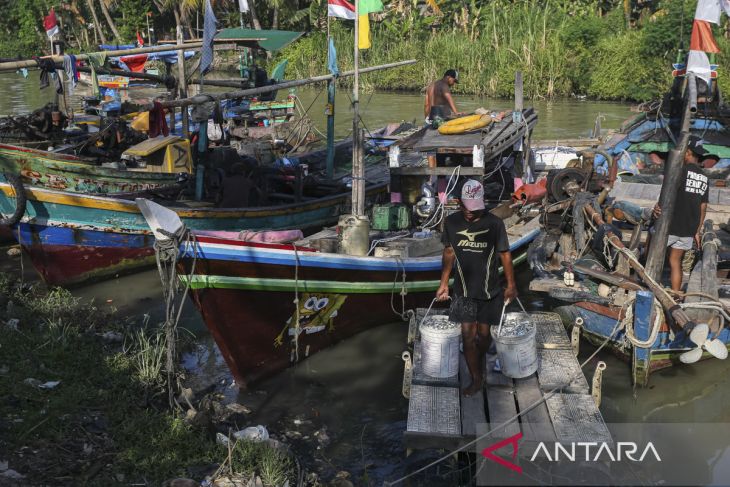 Nelayan menurunkan ikan hasil tangkapan dari atas perahu di Kampung Tanggul Indah, Kelurahan Banten, Kasemen, Kota Serang, Banten, Rabu (10/9/2025). Menteri Kelautan dan Perikanan Sakti Wahyu Trenggono menyampaikan pagu anggaran di kementeriannya naik dari Rp3,6 triliun pada pagu indikatif menjadi Rp13 triliun pada pagu anggaran 2026 guna mendukung swasembada serta mengakselerasi program Kampung Nelayan Merah Putih (KNMP). ANTARA FOTO/Angga Budhiyanto/gp