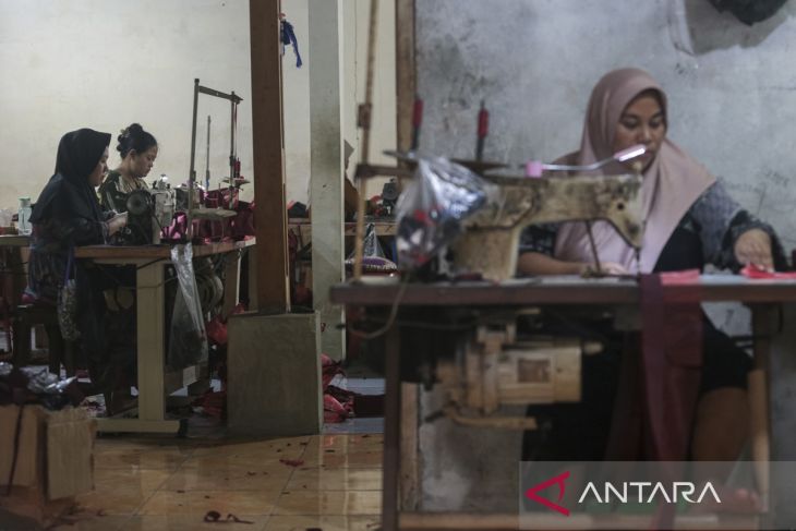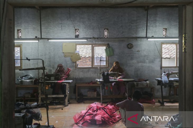Pekerja menyelesaikan pembuatan tas di salah satu rumah industri di Desa Kadugenep, Petir, Kabupaten Serang, Banten, Jumat (23/1/2026). Bank Indonesia melalui hasil Survei Kegiatan Dunia Usaha (SKDU) mencatat kinerja kegiatan dunia usaha pada triwulan IV 2025 diindikasikan tetap terjaga, tercermin dari nilai Saldo Bersih Tertimbang (SBT) sebesar 10,61 persen dan sejalan dengan peningkatan aktivitas pada periode Hari Besar Keagamaan Nasional (HBKN) Natal dan tahun baru sehingga mendorong permintaan domestik. ANTARA FOTO/Angga Budhiyanto/gp